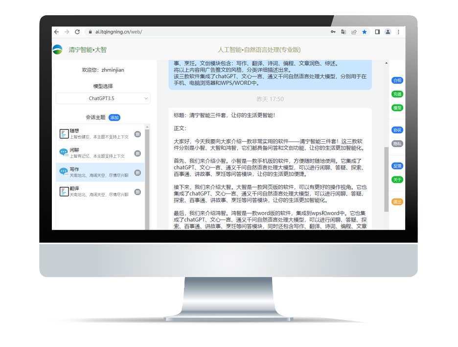 清寧智能科技石家莊有限公司隆重推出集成chatGPT、文心一言、通義千問多種人工智能模型的全新軟件產(chǎn)品系列!